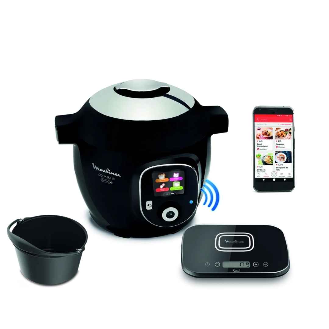 • Connectivité : Bluetooth pour se synchroniser avec l’application Mon Cookeo (accès à plus de 2000 recettes et suivi de cuisson à distance).