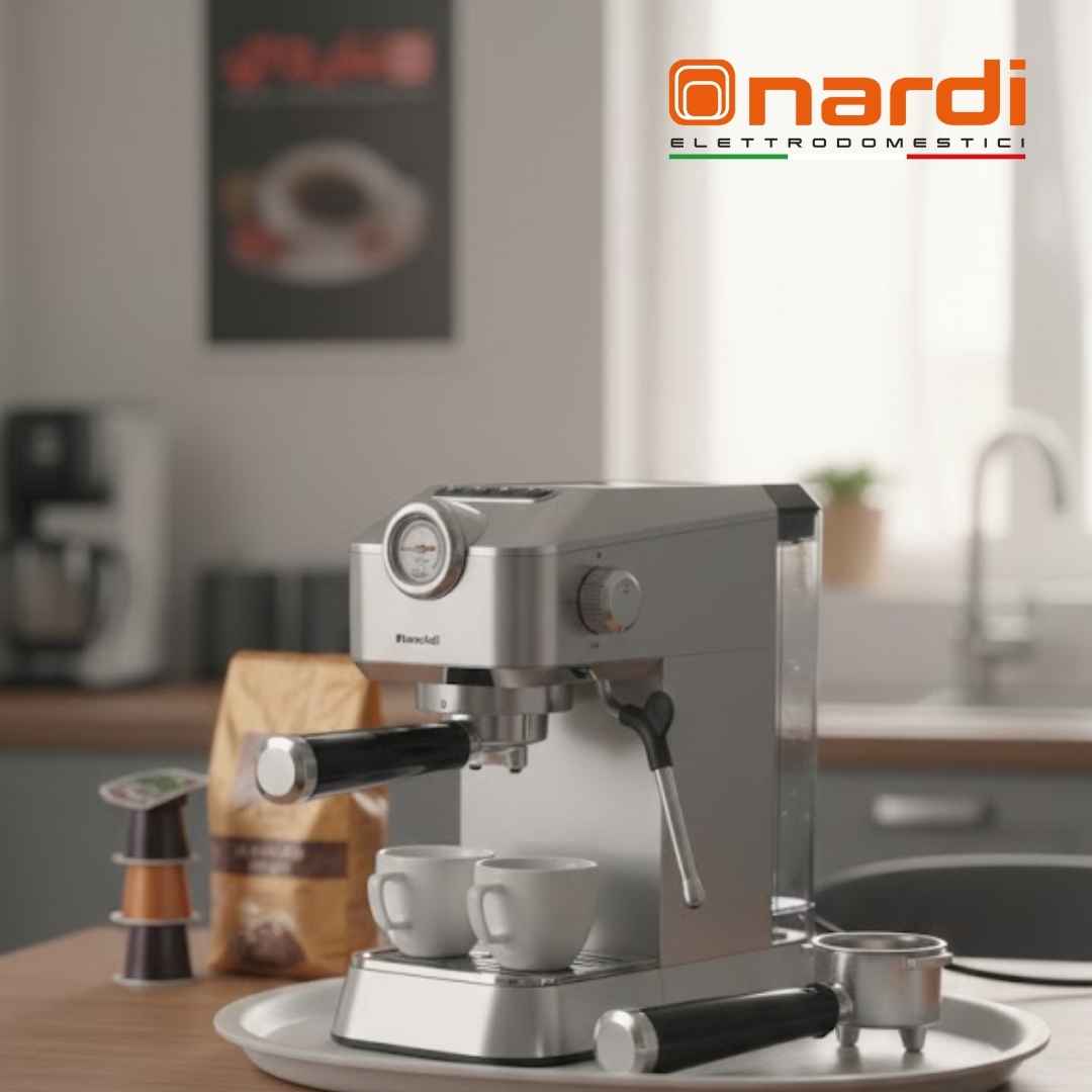 Savourez l'excellence avec la Machine à Café Nardi NCM-B14X. Un modèle 2-en-1 puissant de 1400W offrant une pression de 20 bars pour un espresso parfait. Compatible avec capsules et café moulu