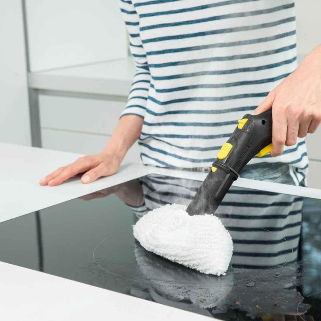 • Buse à main et Bonnette : La buse à main est utilisée avec sa bonnette microfibre pour le nettoyage ciblé des petites surfaces, des robinetteries et des plaques de cuisson.