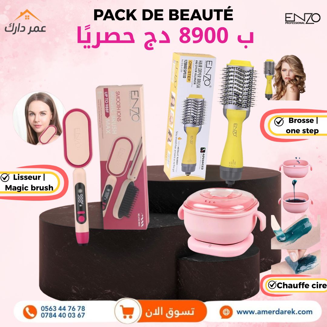- 🌬️ فرشاة حرارية One Step ENZO – 1200W: تنشيف وتصفيف في خطوة وحدة، تعطي حجم للشعر وتقلل التقصف.